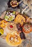 4 créations salées : mini burgers, wraps, quiches, verrines salées, crostinis, toasts variés